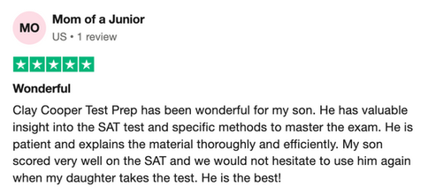Clay Cooper started Cooper Test Prep to offer the option of the highest-quality SAT prep on Earth - and to support that claim with clear, simple proof - to families for whom only the best will do.